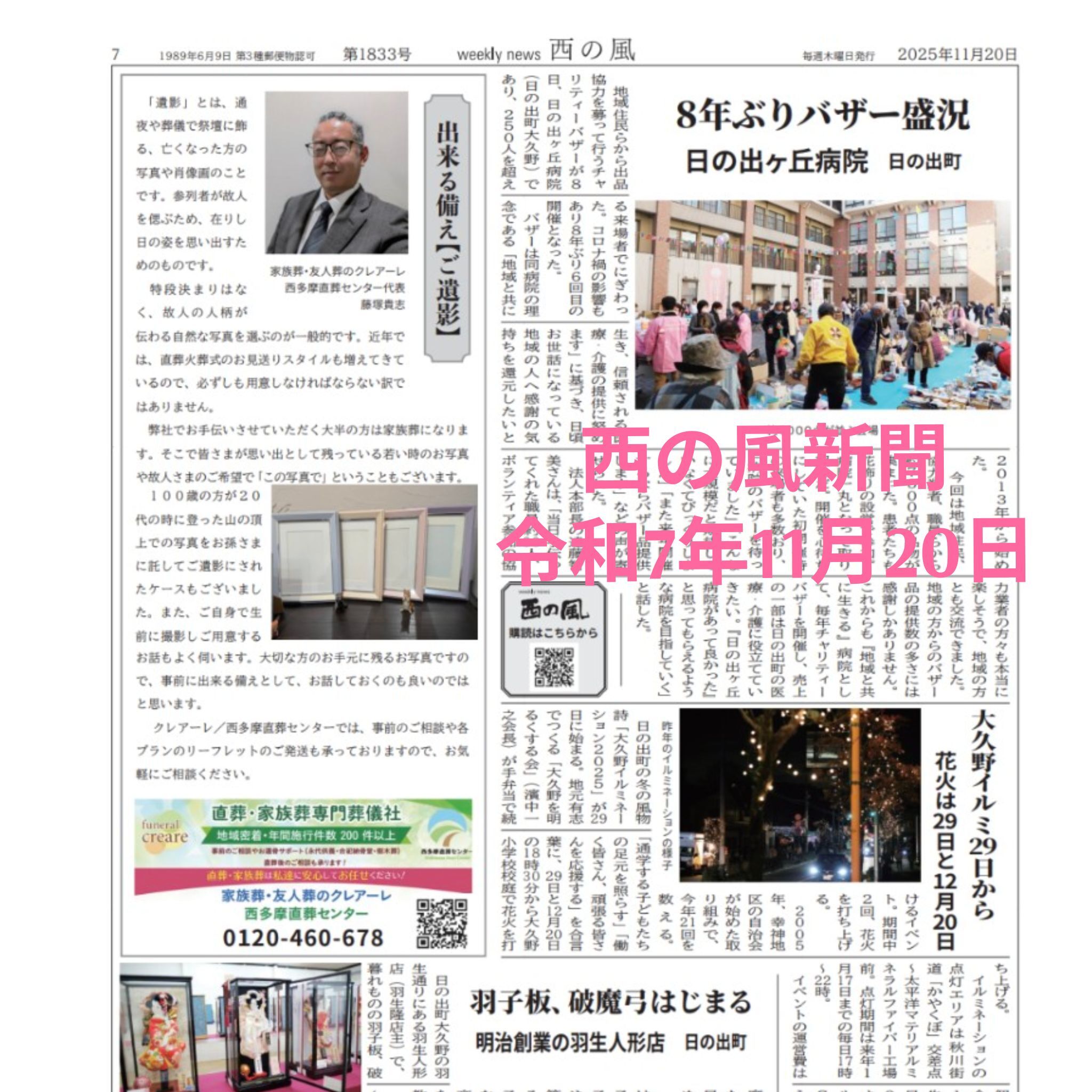 ホーム ≫ お知らせ ≫ 西の風新聞令和7年11月20日号 | 西多摩直葬センター ≫